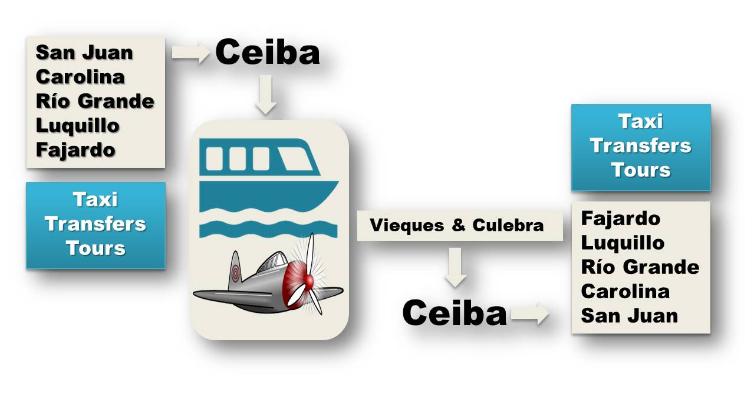 Looking for transportation to Ceiba airport or ferry from San Juan, Carolina, Río Grande, Luquillo or Fajardo? Adding a tour on your way to Ceiba?