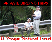 | CODE HOT-YNQ-APRIL Click here for full description. Book two participants for a half day birding trip at El Yunque National Forest and pay $150 (up to 4 hrs.). That´s a $40 saving! Transfer fee not included in price, but available upon request at extra cost. Weekdays only. Booking should be made on or before June 30, 2011. You should mention this code when booking your birding trip. |